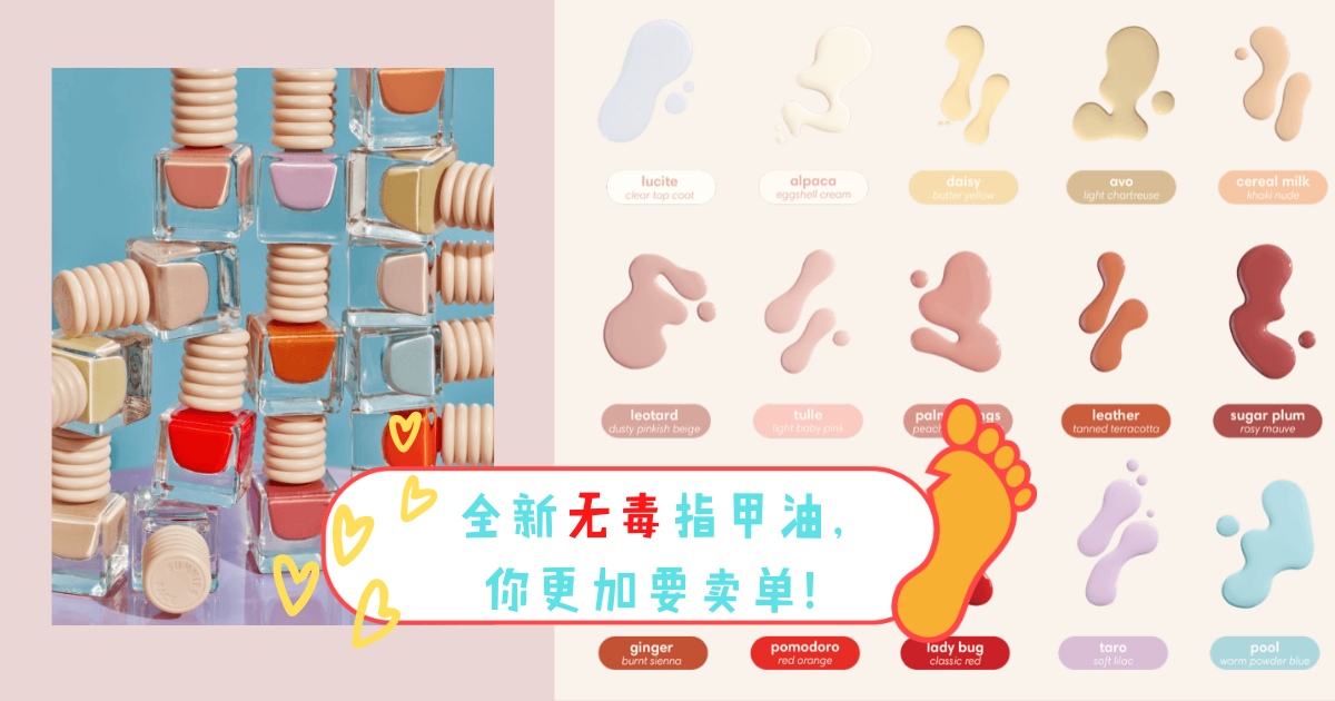 来自菲律宾的小众彩妆品SUNNIES FACE除了有唇蜜以及粉饼以外,在最近更是推出全新的PLAY PAINT指甲油系列,除了有着15种多彩缤纷的色系之外,品牌更是以10-FREE FORMULA制作指甲油!